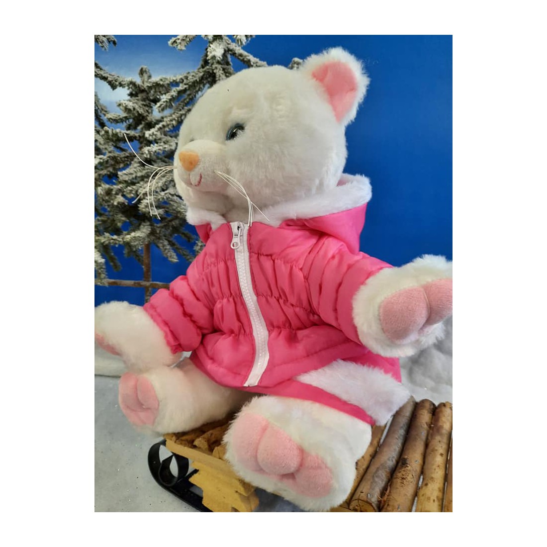 Ein stilvolles Winter-Outfit für Ihr Plüschtier! Bestehend aus einer rosa Parka mit weißem Kunstfell und passendem Rock – perfekt für kalte Wintertage.