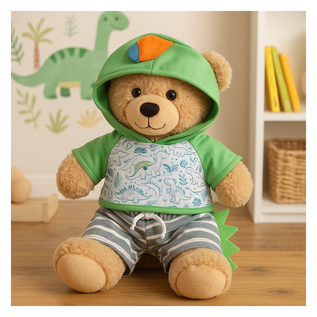 Dino-Kapuzenpulli & Shorts für Plüschbär 40 cm – Sportliches Dinosaurier-Set – Ref. 20274