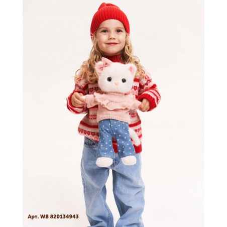 Lucky Kitty Sophie "Denim Herzen" ist eine süße 37 cm Plüschkatze mit modernem Look.