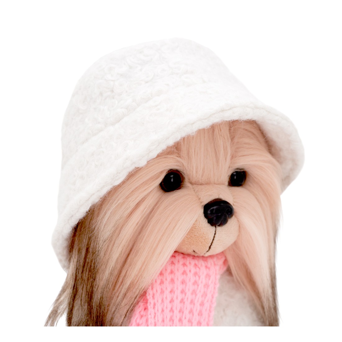 Lucky Doggy Plüsch 40 cm – Weißer Mantel & Rosa Schal – Winter White & Pink – LD2/090