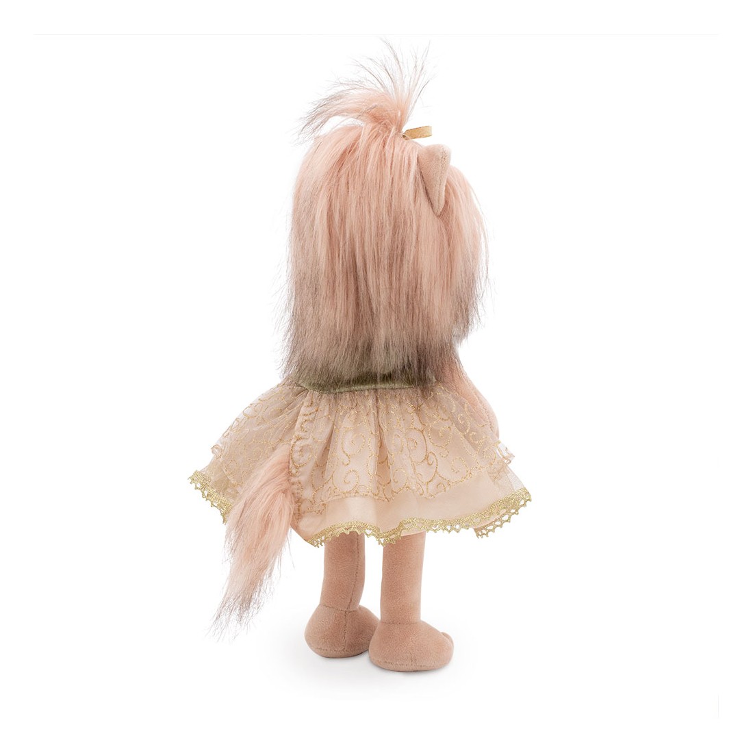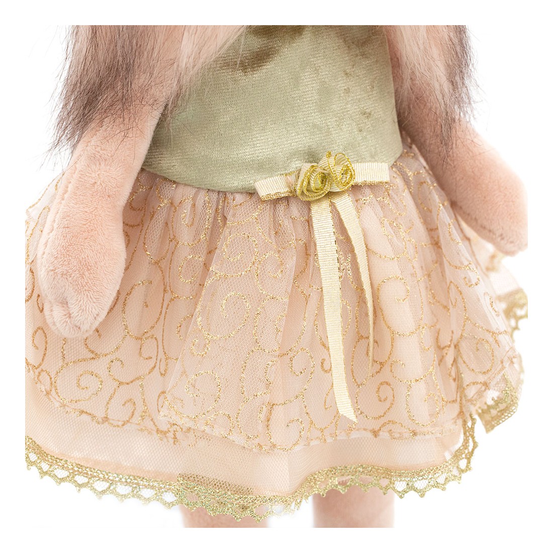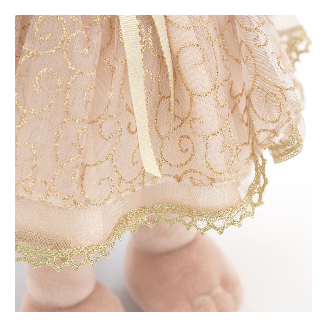Glanzvoll und zart zugleich – Lucky Yoyo erstrahlt in ihrem goldbestickten Kleid „Goldene Anmut“. Eine gelenkige Plüschfigur von außergewöhnlicher Eleganz.