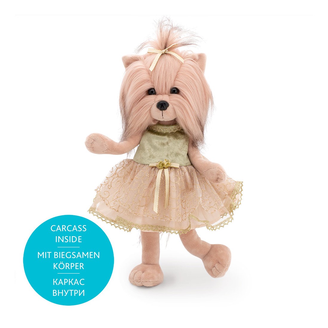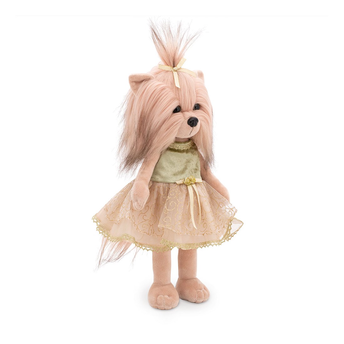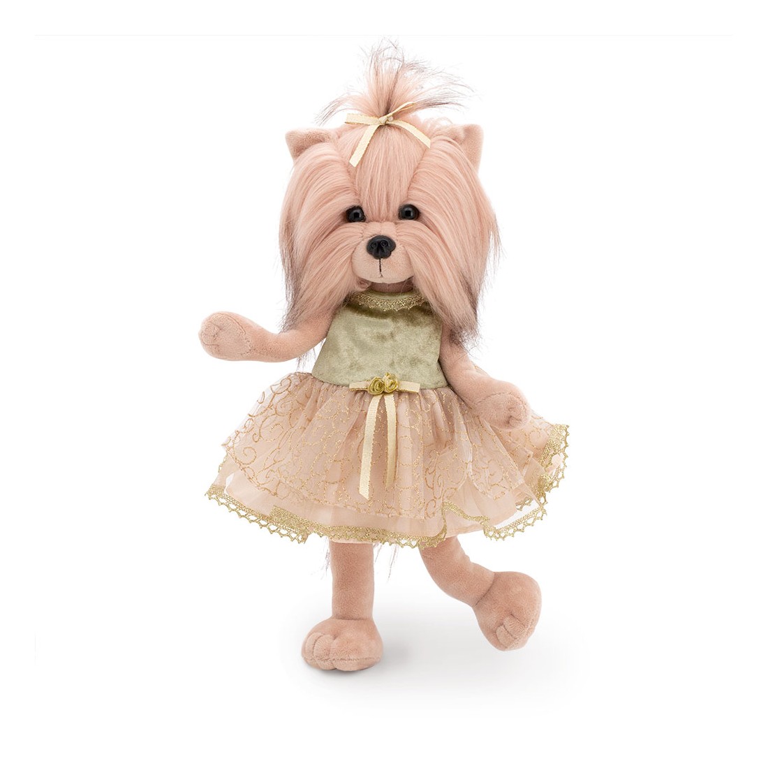 Glanzvoll und zart zugleich – Lucky Yoyo erstrahlt in ihrem goldbestickten Kleid „Goldene Anmut“. Eine gelenkige Plüschfigur von außergewöhnlicher Eleganz.