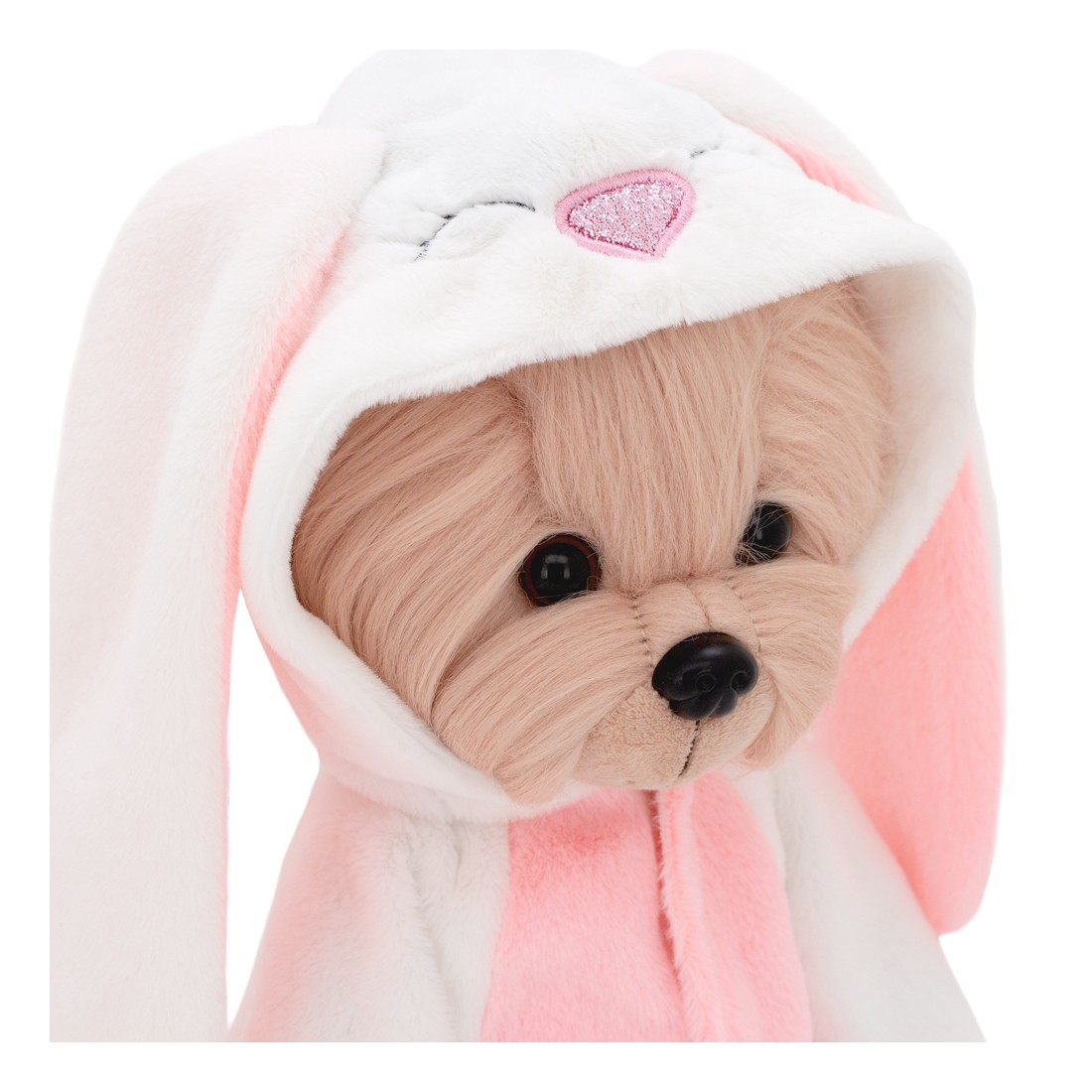 Die Kapuzenmütze mit langen Hängeohren und einem glitzernden Herz auf der Stirn verleiht ihr eine liebevolle Ausstrahlung.