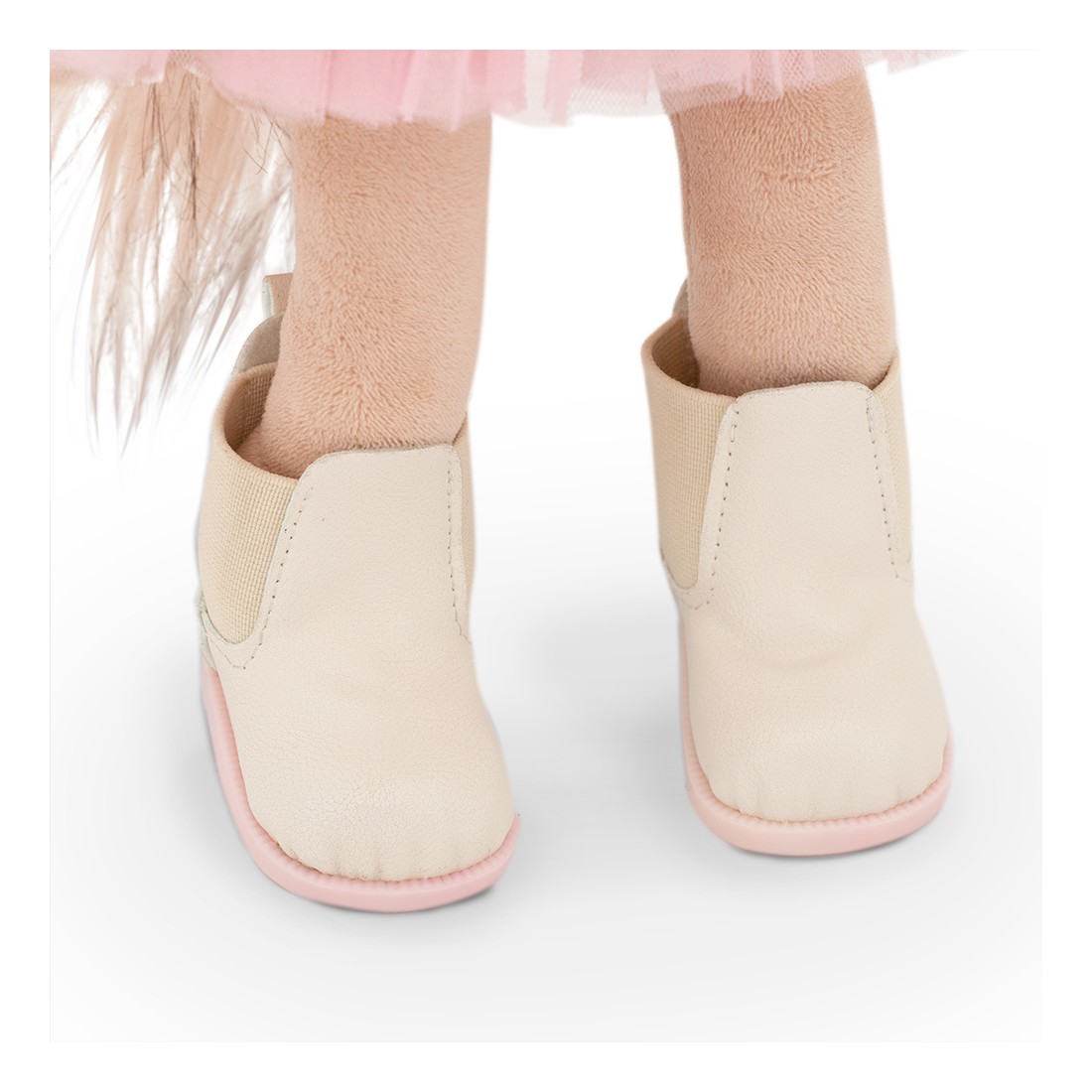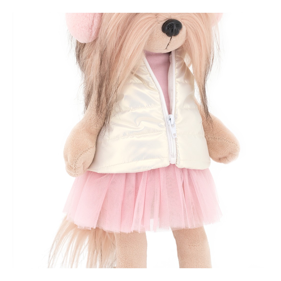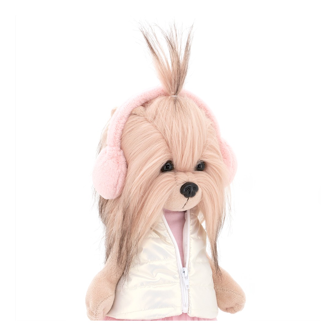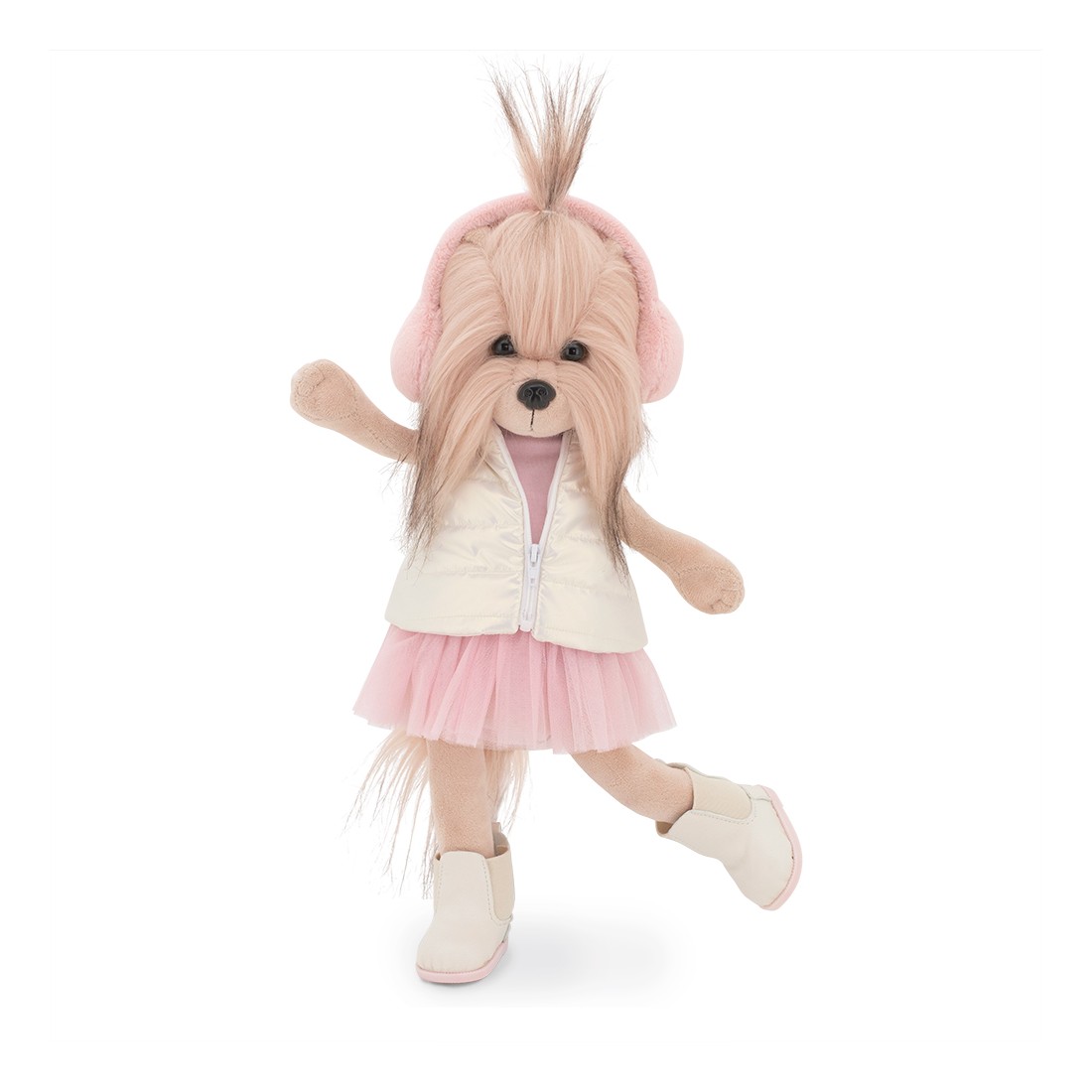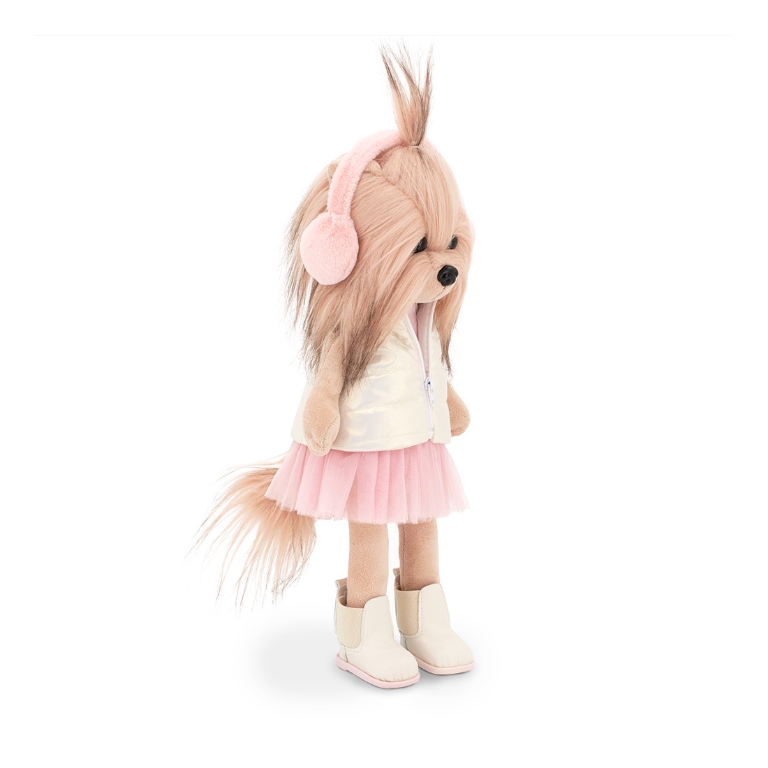 Lucky Yoyo strahlt im Winter! In ihrem “Winterglanz”-Outfit trägt sie einen schimmernden, perlmuttfarbenen Westen, einen rosa Tüllrock und flauschige Ohrenschützer.