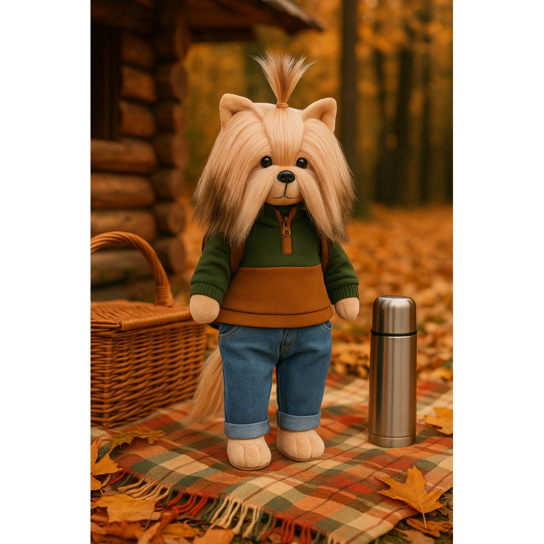 Lucky Doggy Plüsch 40 cm – Grüner und brauner Pullover, Jeans – Autumn Palette – LD3/117