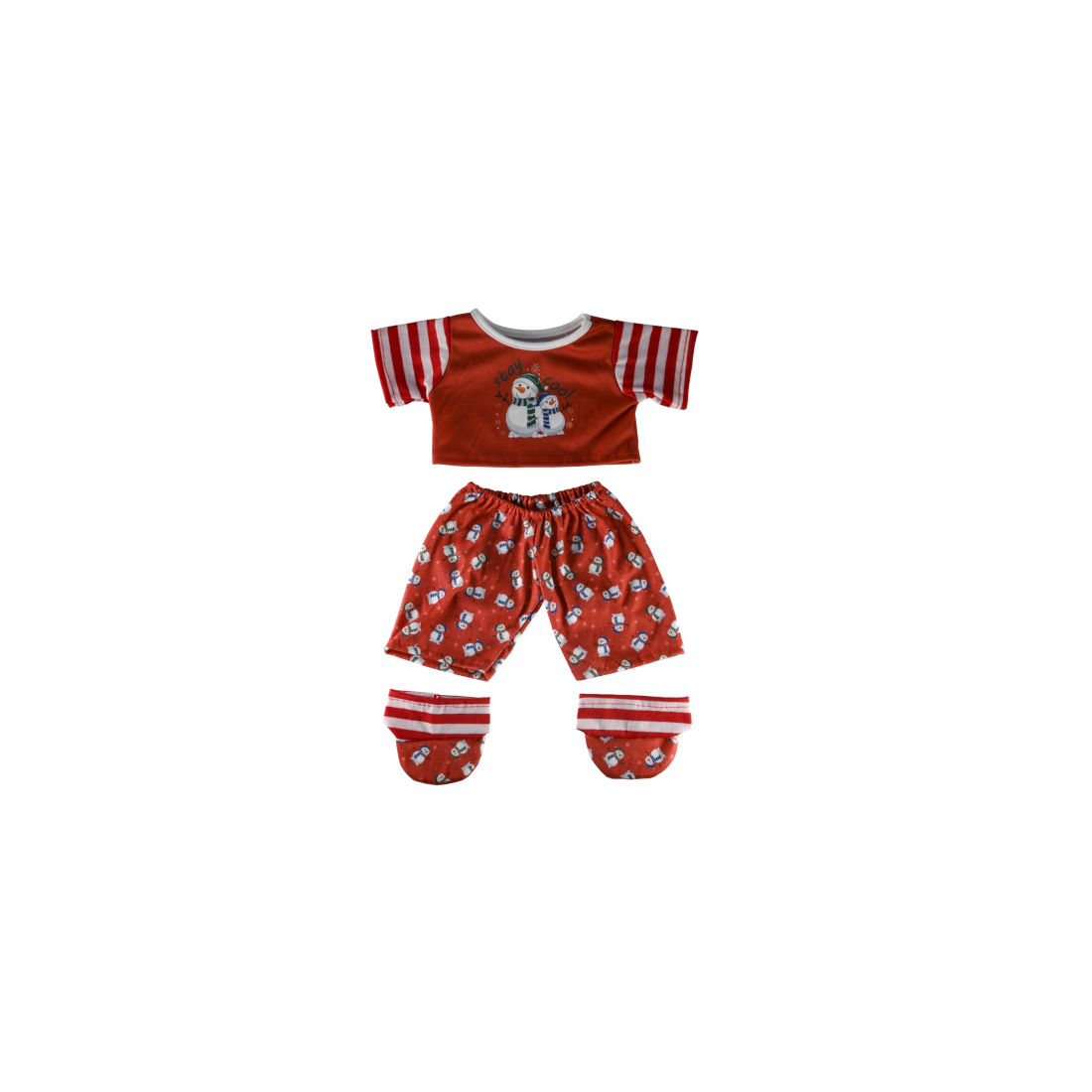 Verleihen Sie Ihrem Plüschtier einen festlichen Look mit diesem roten Weihnachtspyjama mit Schneemann-Motiv.