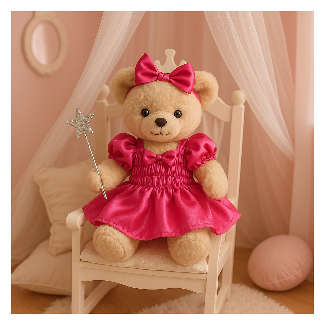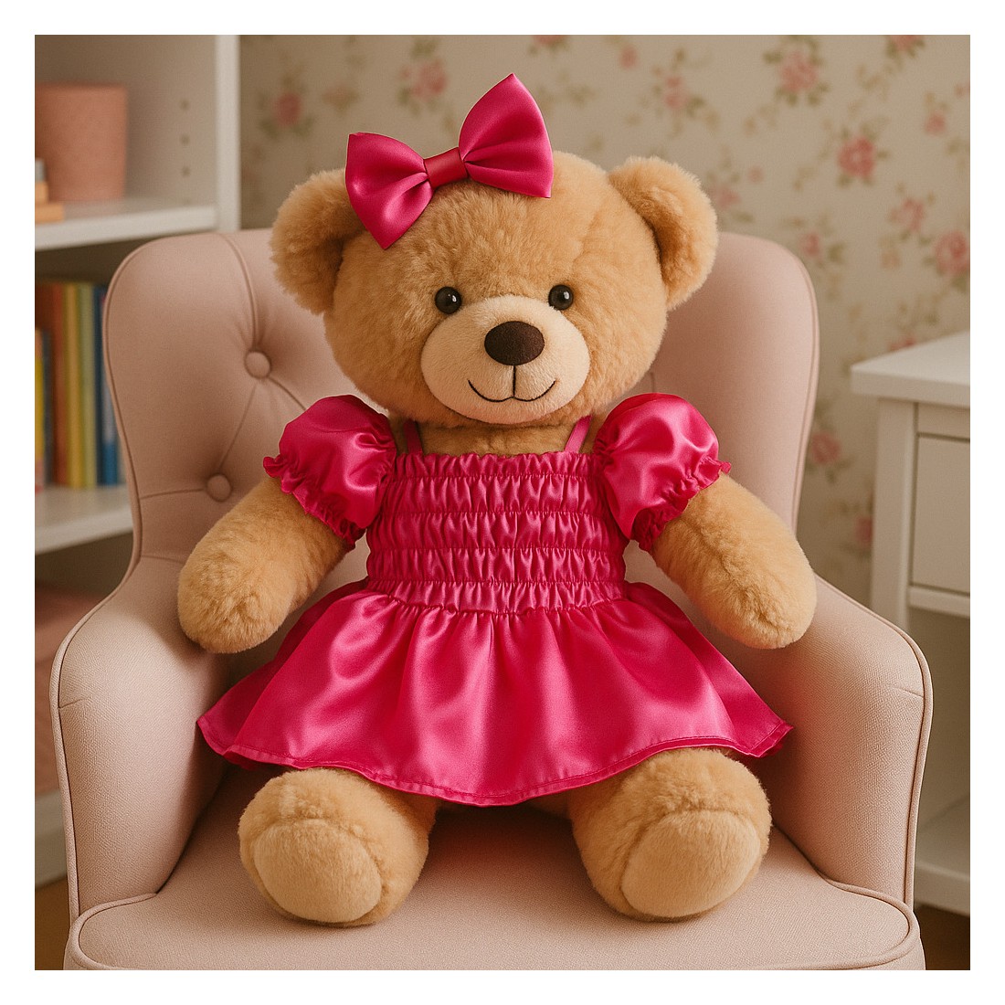 Dieses fuchsiafarbene Satinkleid lässt jedes Plüschtier erstrahlen !