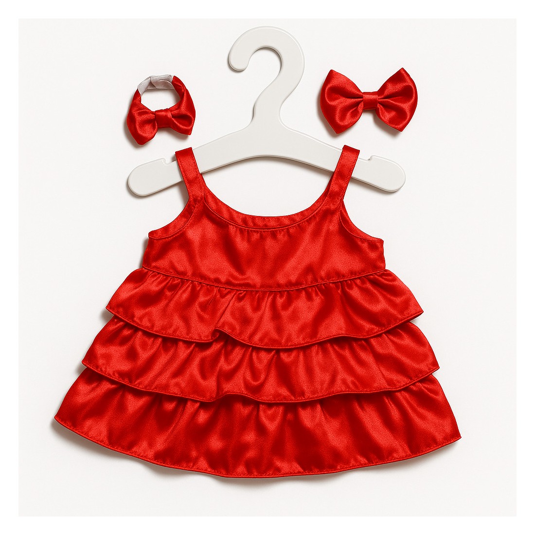 Red Satin Ruffle Dress for 40 cm Plush with Matching Bows – Ref. 532
