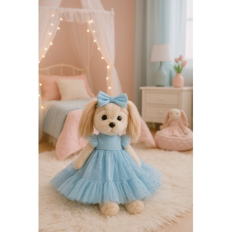 he Lucky Doggy L121 outfit combines lightness and elegance. This blue tulle dress, adorned with tiny dots and soft ruffles, captures a magical, graceful style.