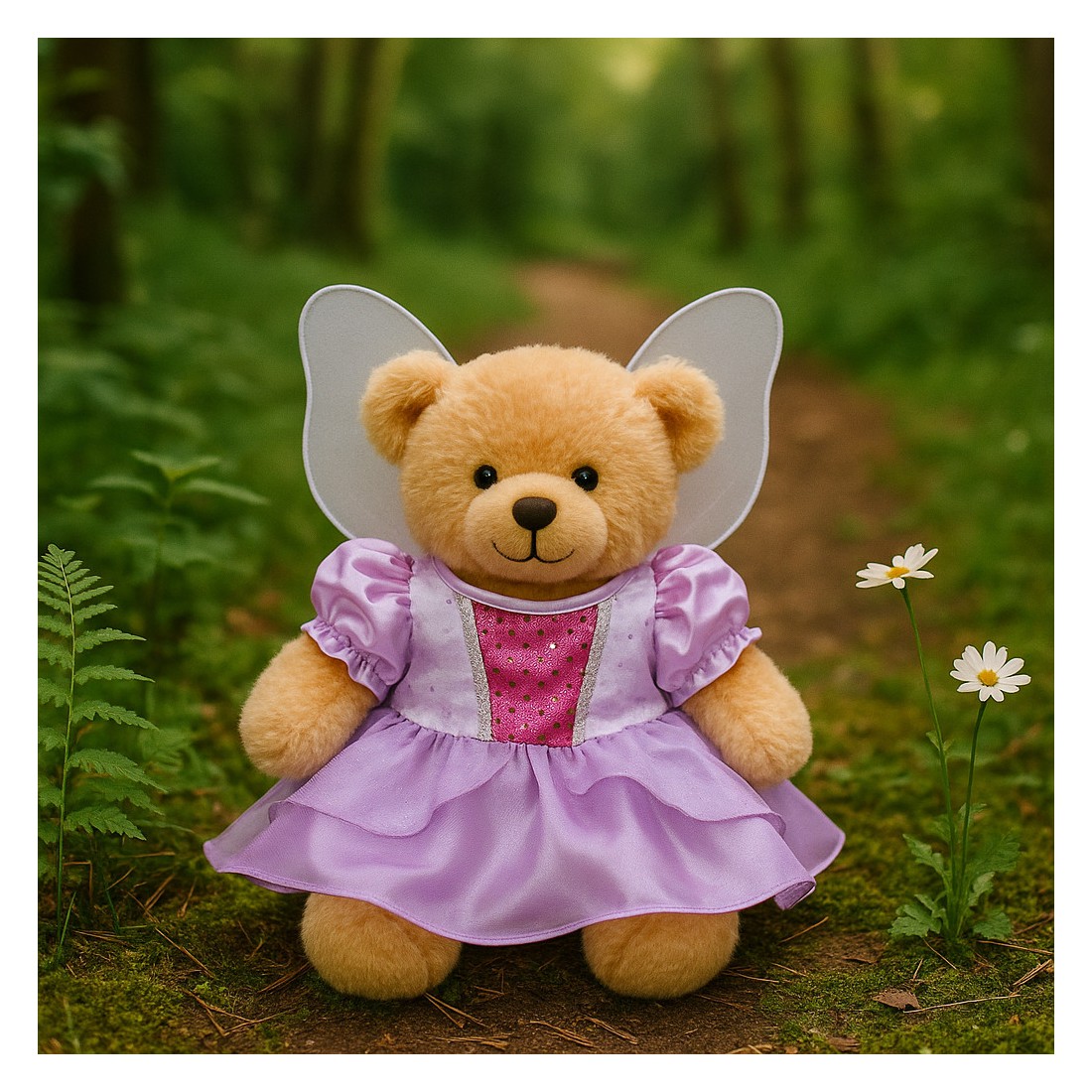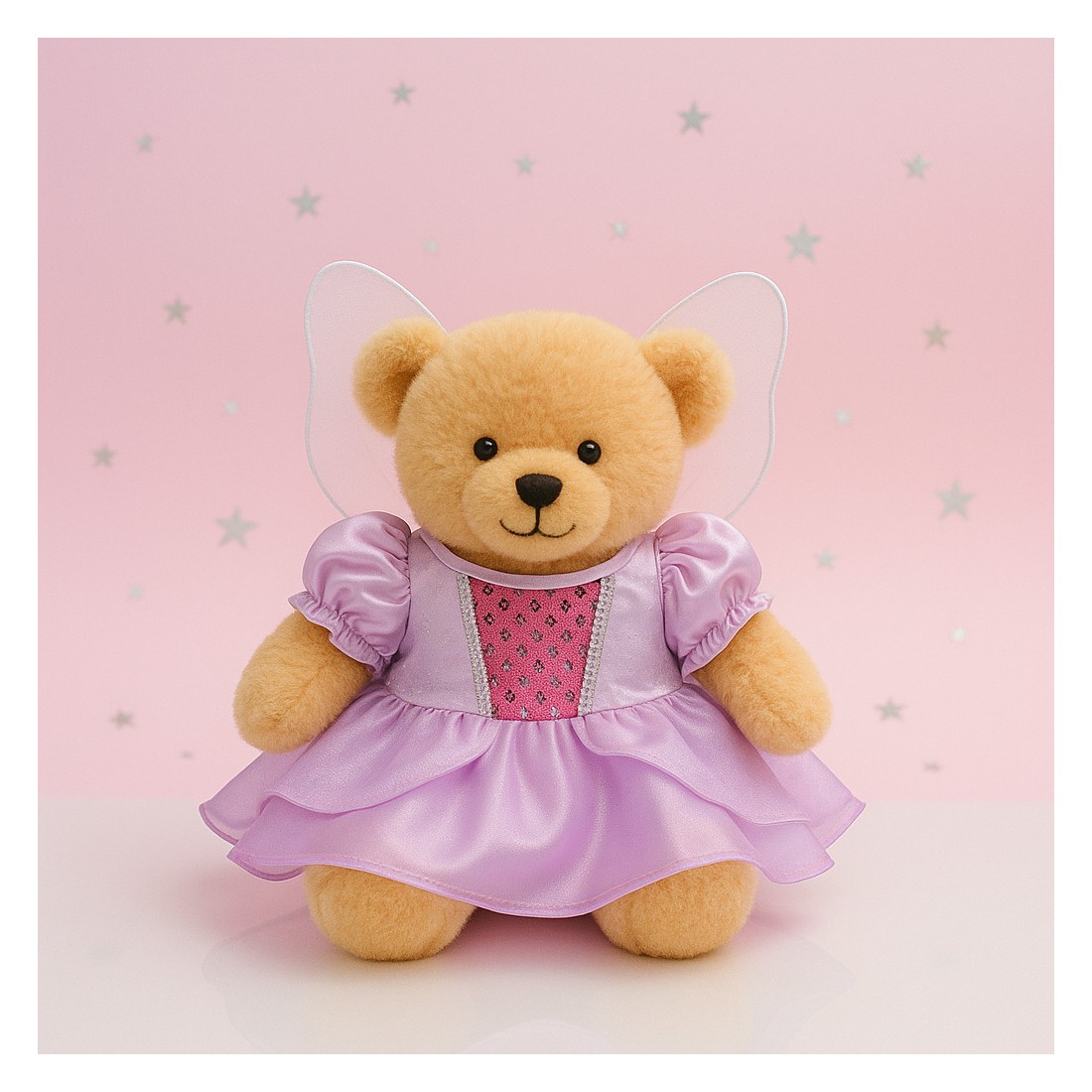 Turn your teddy bear into a real princess with this beautiful purple “Cinderella” dress and delicate fairy wings. Perfectly fits all 38–45 cm plush toys (Build A Bear, Teddy Mountain, The Bear Factory, Center Parcs, Cuddles & Friends).