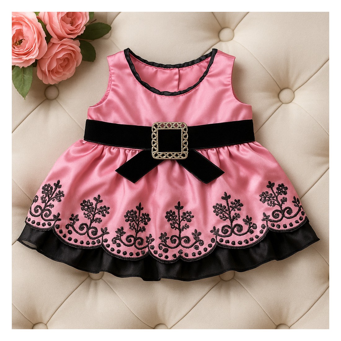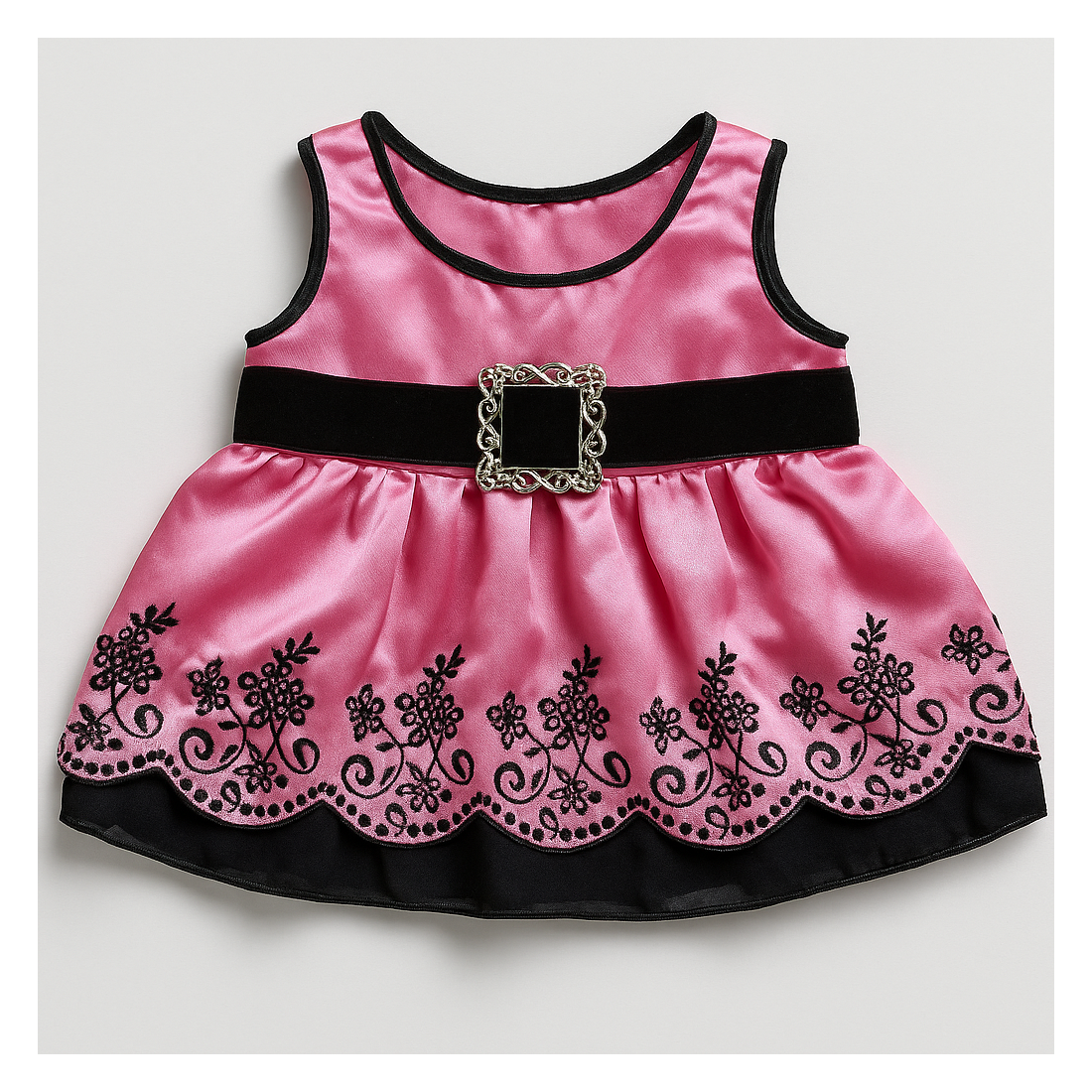 Robe Satin Rose et Noire avec Ceinture et Boucle Argentée – Vêtement pour Peluche 40 cm – Réf. 82