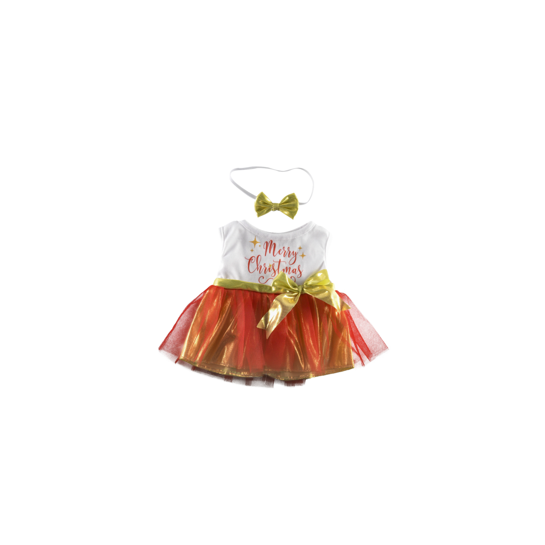 Habillez votre peluche pour les fêtes avec cette magnifique robe tutu rouge et or "Merry Christmas".