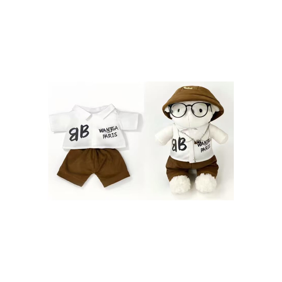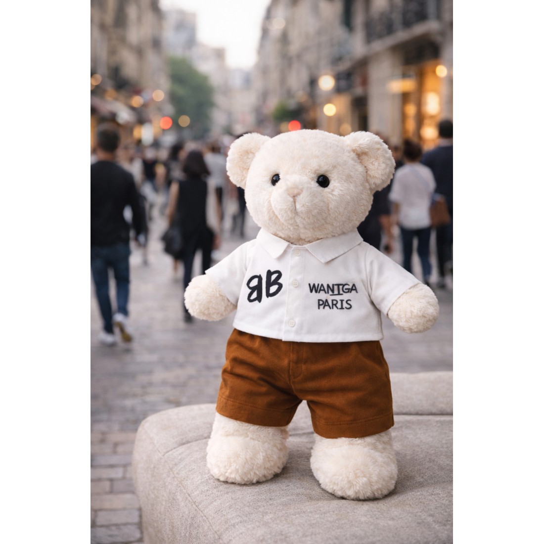 L’ensemble City Explorer (Réf. Y245) habille les peluches avec un style urbain chic et tendance. Composé d’une chemise blanche imprimée et d’un short marron, il est idéal pour un look moderne et élégant. Peluche vendue séparément.