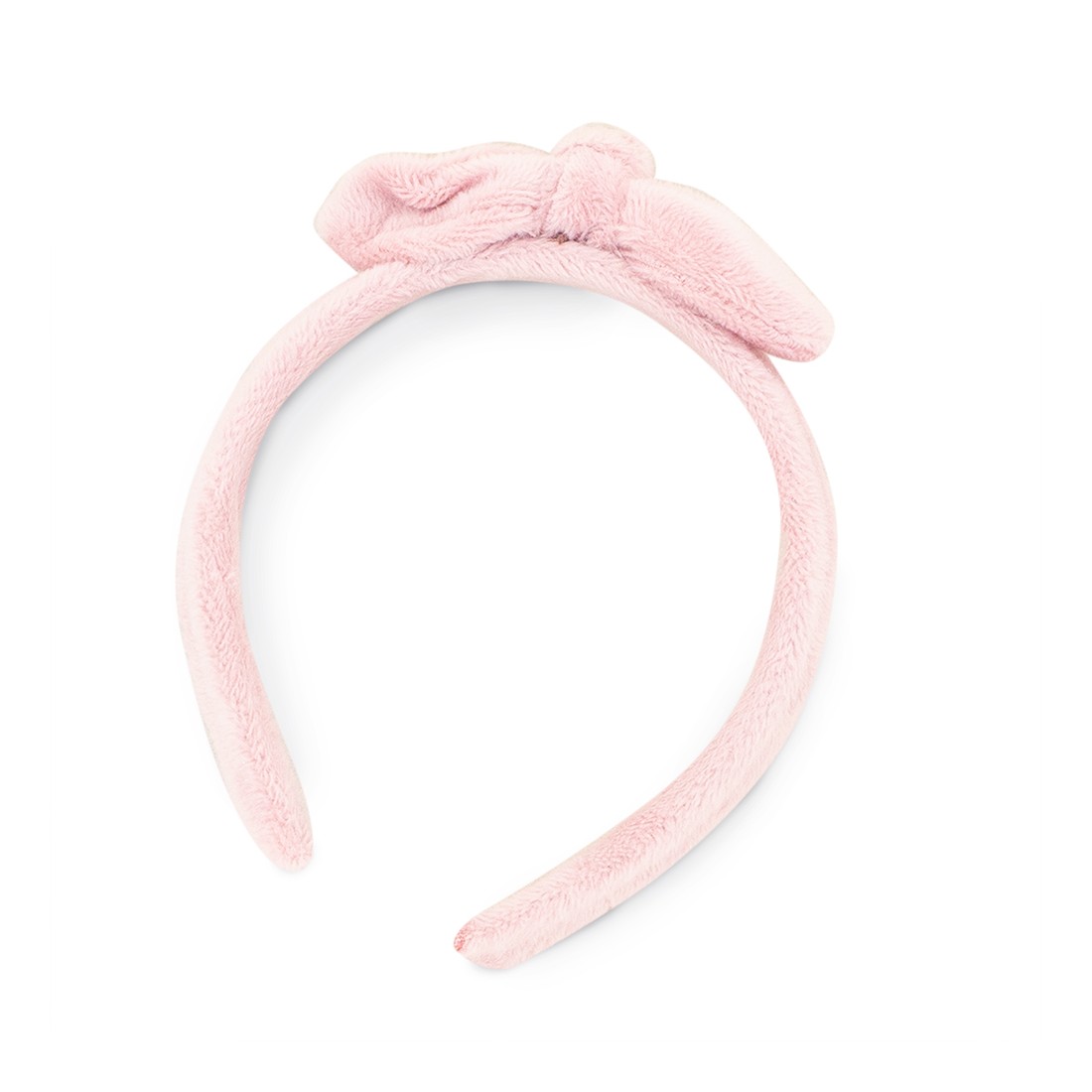 La robe verte à bretelles en tissu côtelé, décorée de petits boutons effet bois, s’accorde parfaitement avec le t-shirt blanc manches longues. Le sac beige à oreilles de lapin apporte une touche de tendresse, tandis que le serre-tête rose vient compléter ce look pastel plein de charme.