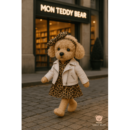Lucky Fendi – Peluche 40 cm tenue léopard et perfecto blanc | Lucky Doggy LD6/126