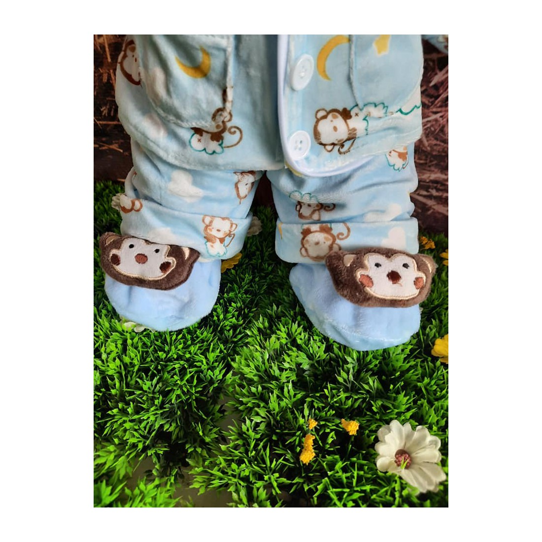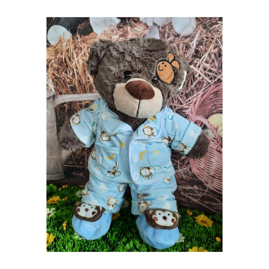 Pyjama bleu ciel motif singe + chaussons – Vêtement pour peluche 40 cm – Réf. 2895 – Teddy Mountain