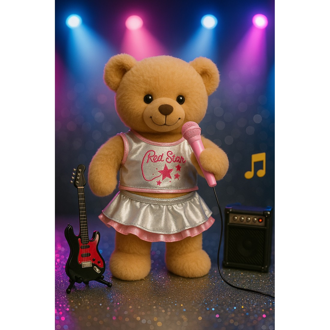 Kleding voor knuffelbeer 40 cm – “Red Star” zilver en roze outfit met microfoon – Ref. 3038 Cuddles & Friends