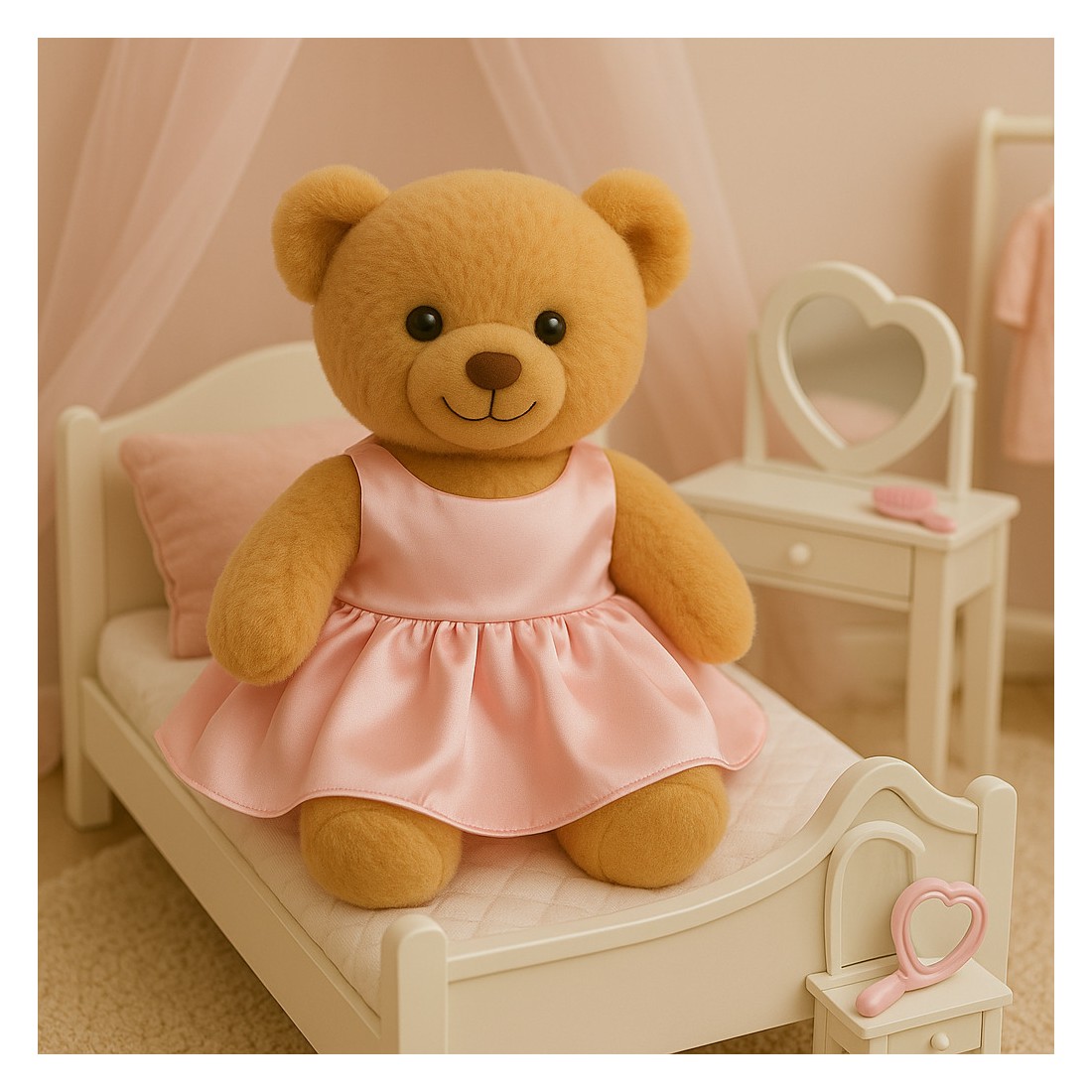 Een zacht en glanzend satijnen jurkje dat elke knuffel een elegante uitstraling geeft ????