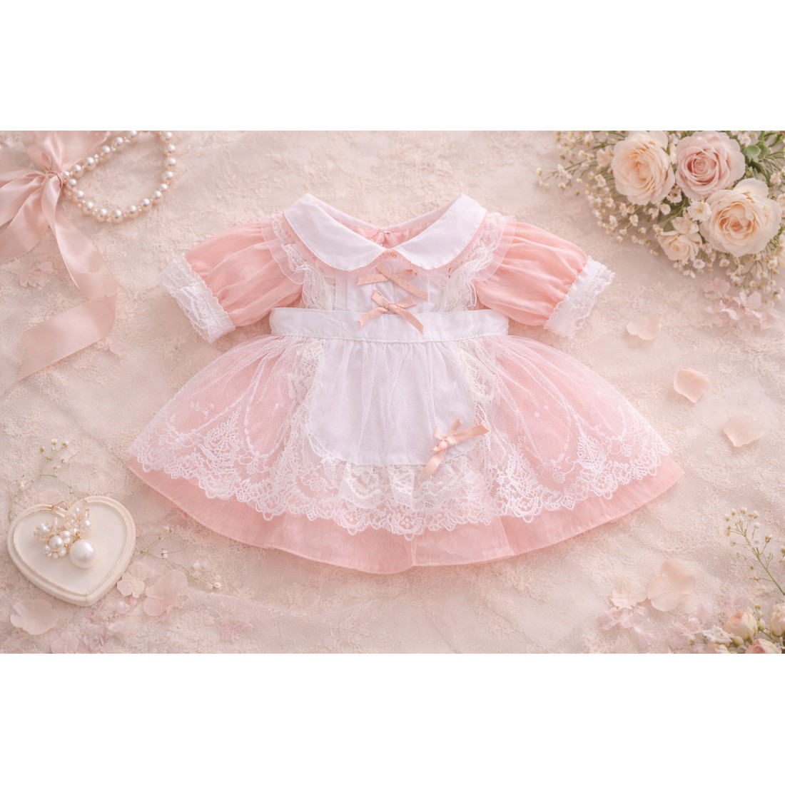Geef je knuffel een zachte en elegante uitstraling met de roze tule rok met strik – Ref. Y273. Deze delicate rok heeft een luchtig volume, kanten afwerking en een romantische stijl, perfect voor een knuffel van 40 cm.