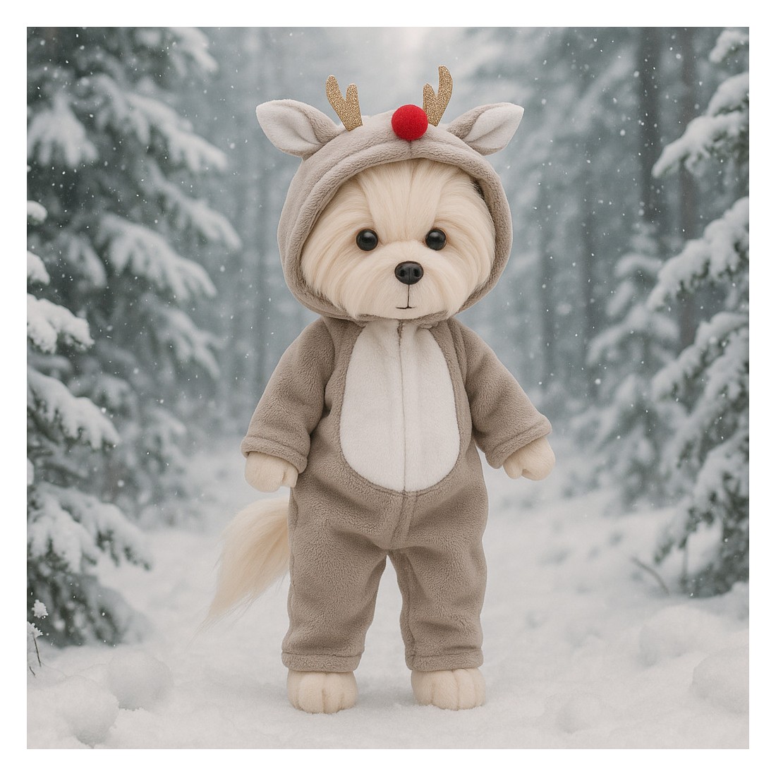 Lucky Mimi straalt in haar zachte "Cute Deer" pyjama – een knusse outfit voor gezellige winteravonden.