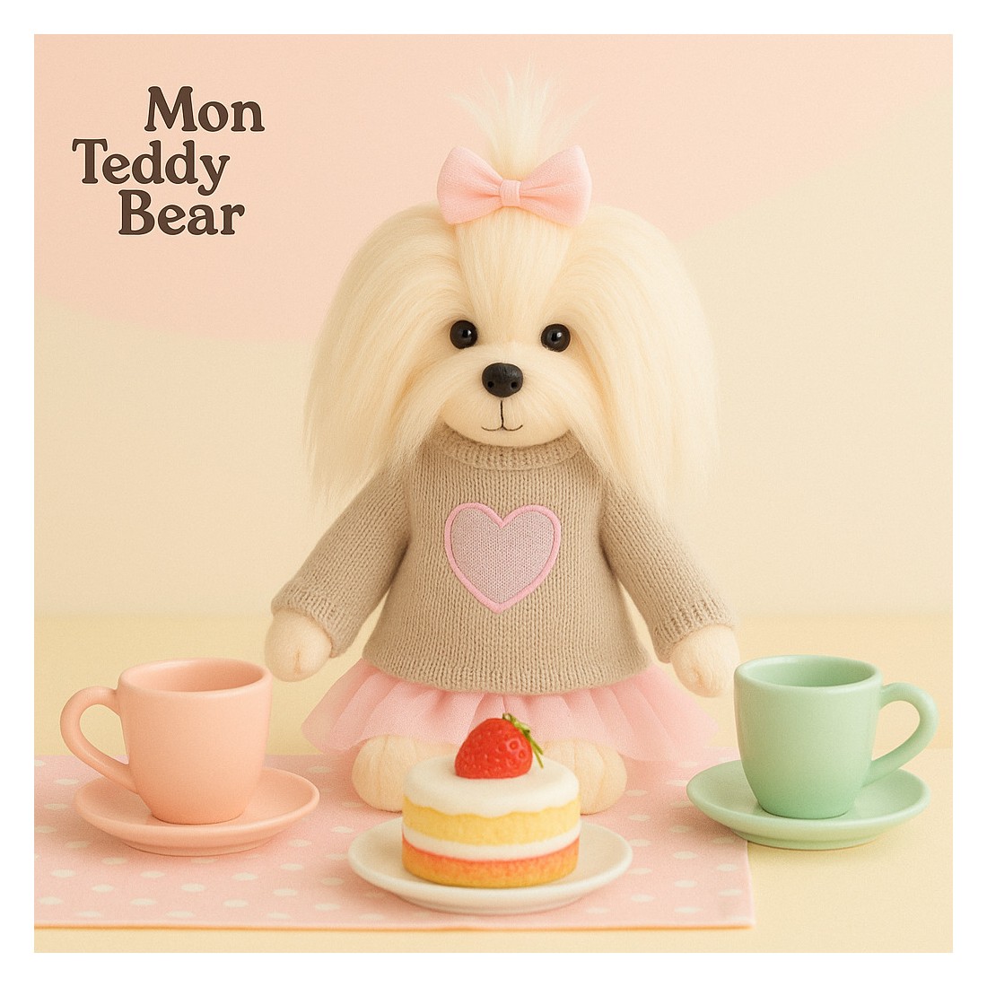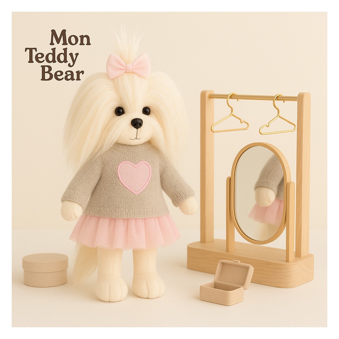 Een lieve en stijlvolle knuffel van Mon Teddy Bear, ideaal als cadeau of decoratie.