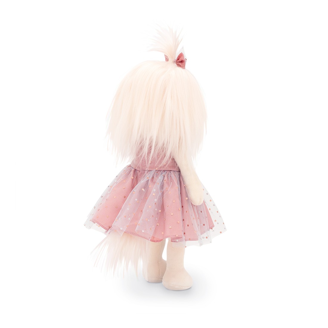 De Lucky Mimi “Schitterende Tederheid” 38 cm straalt met haar roze tulejurk met gouden stippen en haar elegante strik. Luxe, beweegbare knuffel met geschenkdoos en accessoires.
