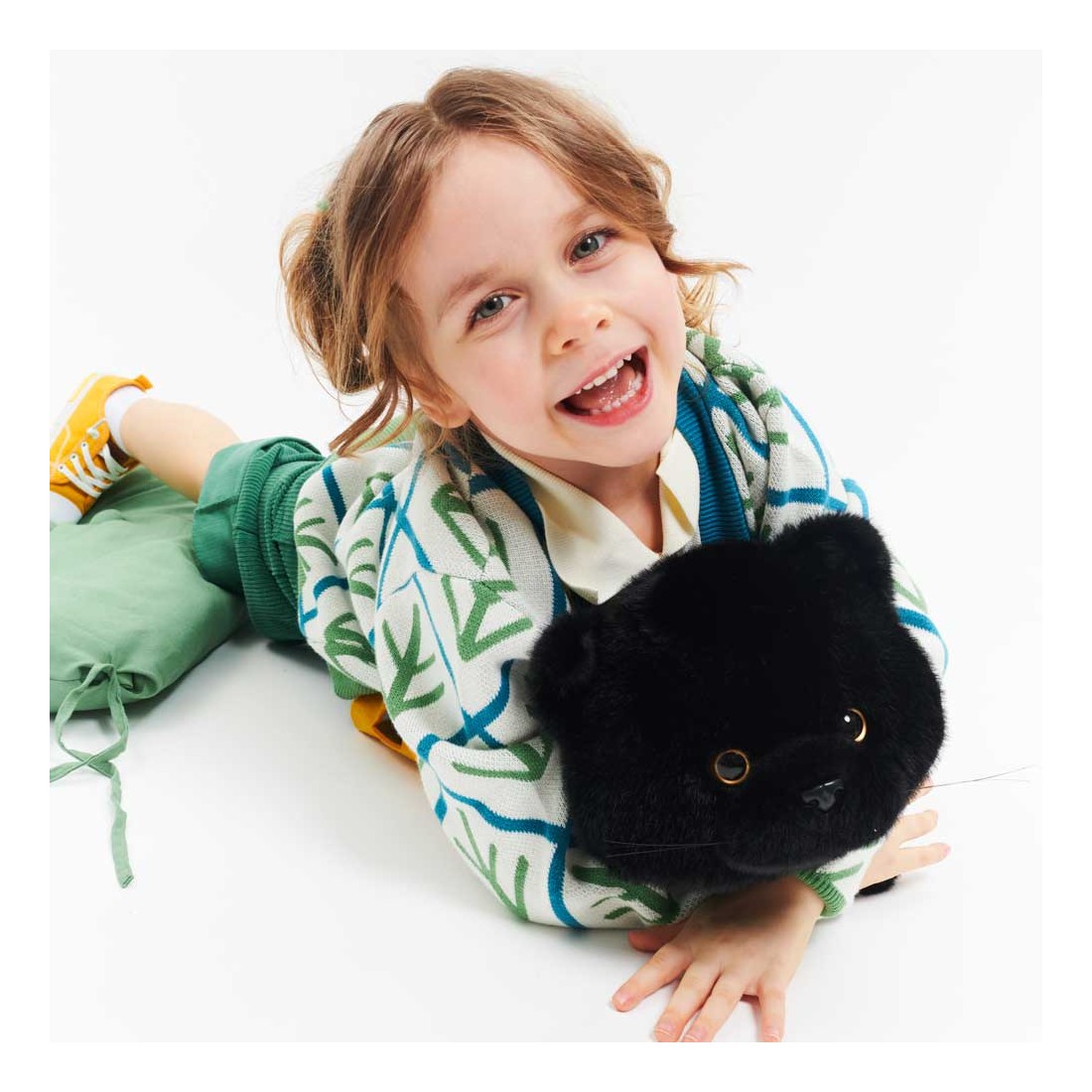 Zachte knuffel van 56 cm, Milo de Zwarte Kat van Milo&Millie. Inclusief lichtgewicht gele vilten draagtas.
